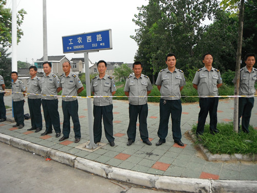 连续数日,队员们顶烈日,战暴雨。拆迁工地上沟、塘遍布,杂草有一人多高,蚊虫特多,但没有一人叫苦,全体保安员坚决服从现场总指挥的调度,坚守在各自的岗位上。